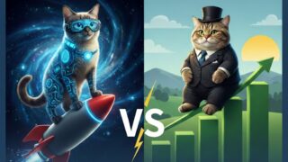 「子猫と始めるお金の勉強にゃんにゃんファイナンス学園」へようこそ! 今回は、空前のブームを巻き起こしている「AI(人工知能)関連投信」と、王道の「S&P500」をガチンコで比較検証します。